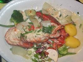Now we are in a bidding war of restaurants promising this heavenly dish and eventually end up in La Belle Epoch, where we are ushered to a tight little table in an elevated corner overlooking the street’s wet cobblestones. The waiter stares at us in disbelief. “We have no waterzooie with lobster.” We assure him that’s the only reason we’re sitting in his restaurant. He huddles with the man out front and comes back, grim-faced. “Okay, we have waterzooie with lobster.” “How much for it?” Stu thinks he says 13 euro.